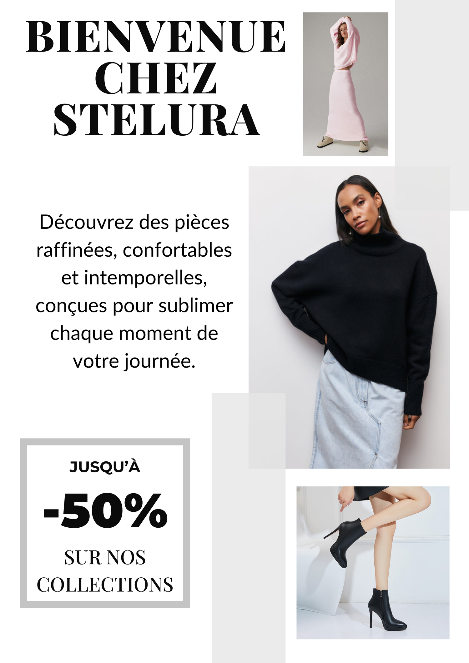 Silhouettes sophistiquées, matières délicates et coupes pensées pour sublimer chaque instant. Chez Stelura, votre style évolue avec douceur et assurance — toujours chic, toujours vous.