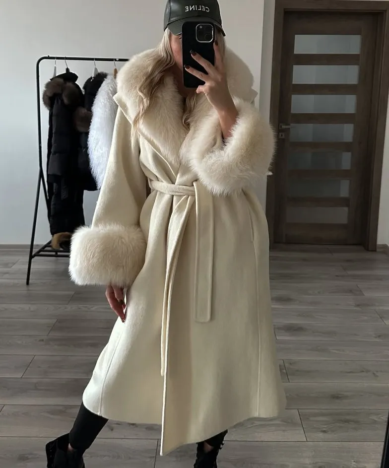 Manteau Long en Laine avec Col en Fourrure – Élégance & Luxe Hivernal